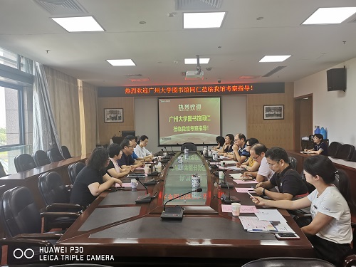 座谈会上,双方还就图书馆建设发展中遇到的问题进行了热烈的讨论和轻松的交流。广州大学图书馆艾新革副馆长对我馆的学科服务、查新发展、文化建设等工作都给予了高度评价。会后,广州大学图书馆同仁还具体到我馆相关部门进行了更深入地交流。