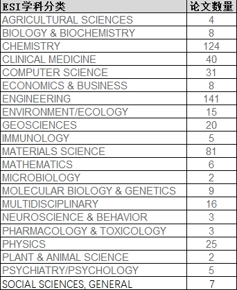 二、2025年10月学院对本校12个ESI学科(化学、材料科学、工程学、计算机科学,农业科学,生态环境学,物理学,临床医学、地球科学、生物学与生物化学、毒理学与药理学和社会科学总论)和1个潜力ESI学科(数学)新发文数量统计如下: