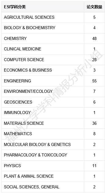 为了方便我校教学科研、科研管理等相关人员及时了解、跟踪本校ESI学科论文的收录情况,福州大学学科情报分析小组利用Web of Science (SCI-EXPANDED、SSCI)数据库对近期作者单位为“福州大学”的论文进行了收集整理统计,更新时间为2020年7月5日。