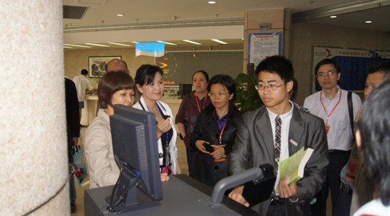 16日一早,图书馆博学厅迎来了检查组一行70多人,在听取了福州大学迎评报告后,专家们分组开始了检查。图书馆迎来了教学评估三个组的专家们。评估一组的专家们在图书馆刘敏榕书记的讲解下,从图书馆西大门进来,依次检查了图书馆二楼至四楼书库。专家们对图书馆的自助借还机、自助检索机等发生了强烈兴趣;对图书馆的环境卫生和借阅方式高度赞扬;对图书馆开展的(转第四版)(接第一版)新知讲坛、勤工助学工作等一致好评。评估二组的专家们首先参观了校史馆,在我馆讲解员的严冬老师的介绍下,对我校的办学历史和发展也有了进一步的了解。接着由李巧玲老师为来宾们介绍了图书馆的基本概况、服务理念、业务管理以及情报学硕士点等。客人们对福州大学及图书馆的快速发展以及所取的成就给以高度的肯定。评估三组的专家们参观检查了我馆消控中心、地下消防水泵室等消控设备,对我馆的消控工作表示肯定。