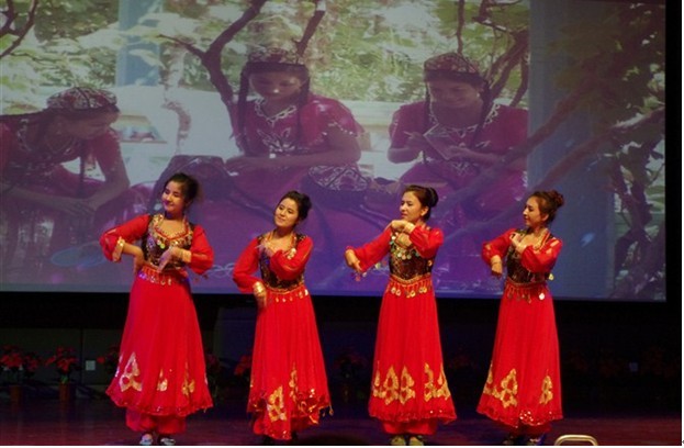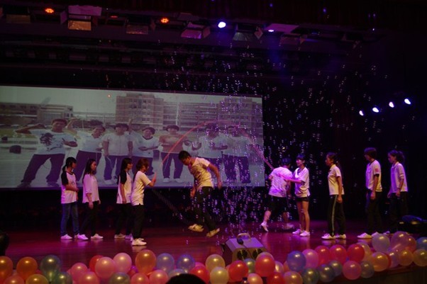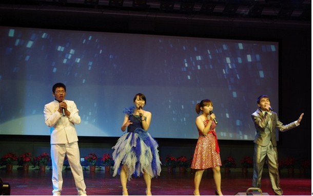 一首《相亲相爱》拉开了晚会的帷幕,紧接着搞笑版的《三打白古今》更是吸引了同学们的眼球,师徒四人的滑稽表演,配上流行的《江南style》,将古典与流行结合,引发强烈反响。之后的心理情景剧《青春岁月》唤起了同学们的美好回忆,将晚会推向高潮,而反串版的《罗密欧与朱丽叶》也让博学厅内的笑声久久不能平息。可爱的小鸭操,动感的大众舞,活力的花样跳绳,充满青春韵味的歌舞《失恋阵线联盟》,以及书法与太极互相融合的中国文化秀,也为晚会添色不少。