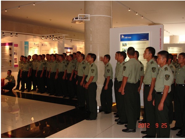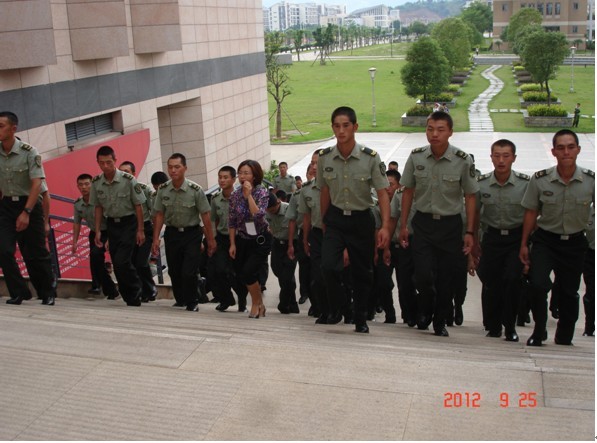 2012年9月25日下午,中国人民解放军73121部队256团官兵一行100余人,参观了我校校史馆和图书馆。