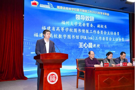 福建省高校图工委主任、校党委常委、副校长王心晨教授出席会议并致辞。王心晨教授充分肯定了福建省高校图工委近年来取得的显著成绩。他指出,福建省高校图工委充分发挥桥梁纽带作用,紧密团结引领全省高校图书馆同仁,为全面提升福建省高校图书馆事业发展水平、服务人才培养和区域创新作出了重要贡献。他希望大家踔厉奋发、勇毅前行,推动全省高校图书馆在全新历史起点上实现新跨越,为福建省高等教育与文化事业高质量发展贡献新的更大力量。