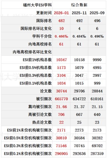 2026年01月08日,科睿唯安更新了ESI数据(2026年第1次更新,含10年10个月的收录论文及其引文信息)。此次数据涵盖的时间范围为2015年1月1日-2025年10月31日。