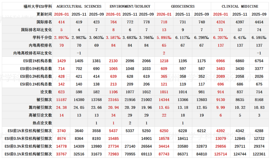 福州大学ESI潜力学科中,本期潜力值最高的是植物与动物科学学科,详见表 4。