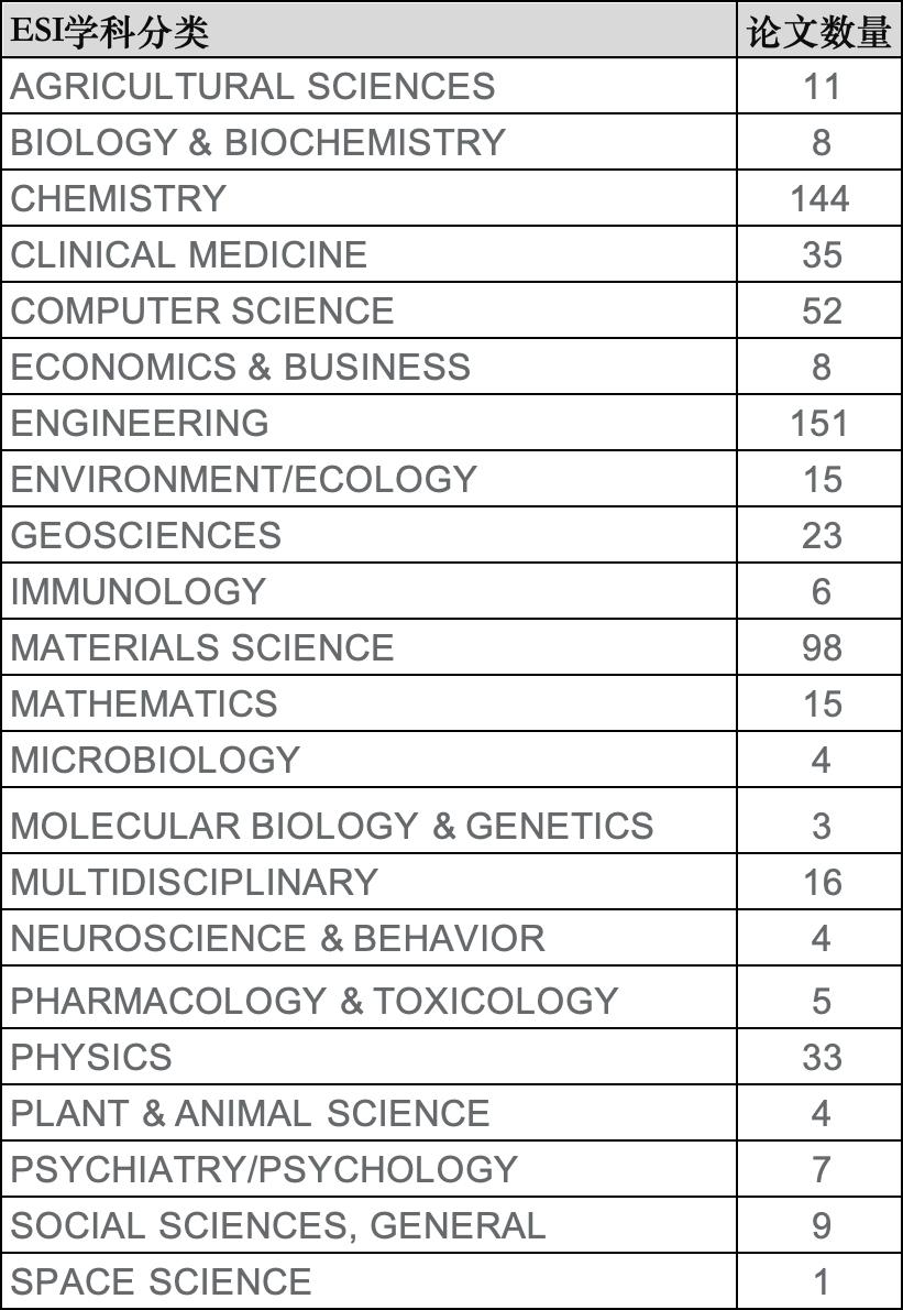 各学科论文收录情况统计如下:
